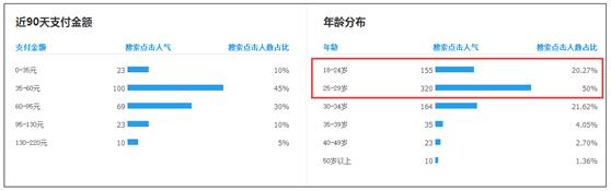大部分為女白領,或者女公務員,消費的金額在35——95之間。額,其實,我最想關注的是年齡這個特征:18——24歲占比是20%多,25——29歲占比是50%,兩個加在一起超過70%。說明什么?絕大部分是85后,90后的女生!
