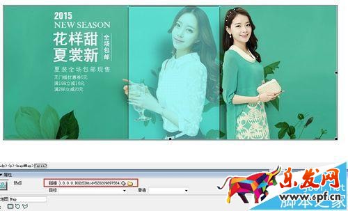 5、單擊設(shè)計(jì)區(qū)域的圖片,選擇你所需要的熱點(diǎn)工具,框選你需要加鏈接的區(qū)域,在屬性欄中的鏈接加入你框選內(nèi)容所要加的鏈接(切記要把鏈接那里默認(rèn)的#刪除)