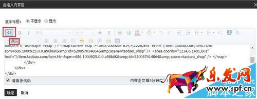13、進(jìn)入淘寶后臺(tái)店鋪裝修,將自定義內(nèi)容之前的源碼刪除,然后粘貼從DW復(fù)制下來(lái)的代碼