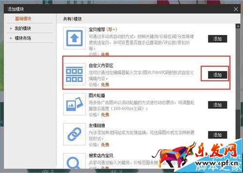 8、進(jìn)入淘寶后臺(tái)店鋪裝修,添加自定義內(nèi)容區(qū),將代碼粘貼到源碼中