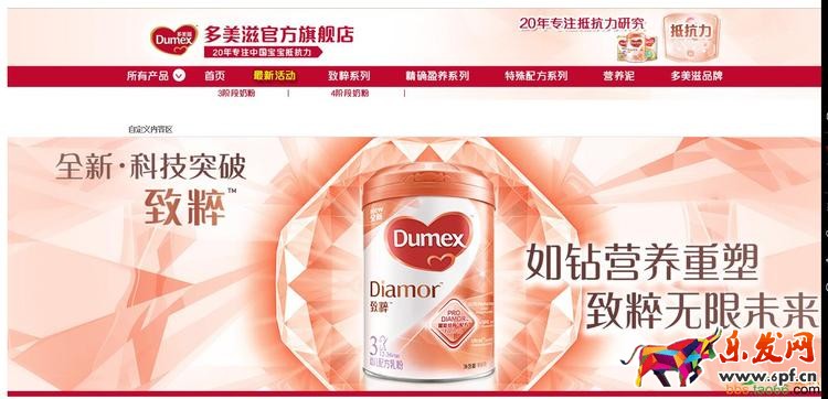 多美滋接下來的直接是店鋪的主打產品,頁面唯美且產品分類清晰。美贊臣的則是店鋪的優惠活動。字體突出生動,贈品信息詳細。所以產品圖片一定要定位清晰,能很好的告知顧客你要訴說的東西。一個店鋪有好的產品圖片就相當于是成功了一大半。簡單的說,圖片就是電商產品變現流量變現的最重要因素之一,我們必須詳細的了解每個產品,每個頁面,每個素材的數據表現,并根據數據優化推送給消費者的圖片信息,才能逐步優化流量變現與產品變現的效率。