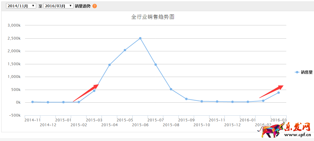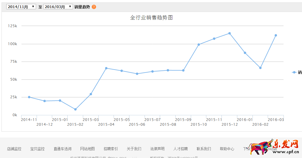 這是從2014-11月到2016-3月的全網(wǎng)該類目下的銷售情況: