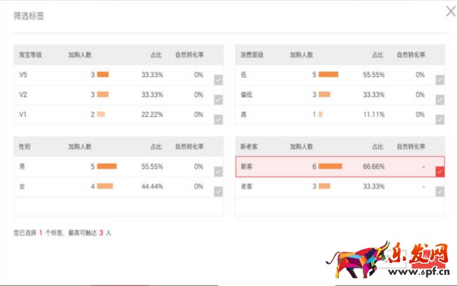 溫馨提示:淘寶登記:指消費者在淘寶平臺登記,并非店鋪內(nèi)vip等級。新客:指歷史未成交客戶。老客:指歷史有過成交客戶。