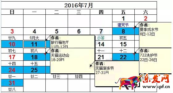 夏季嬉水節:淘寶推出的節日,目前影響力一般,不過嬉水類的產品還是可以借一下風的。天貓運動會,天貓推出的節日,去年的效果還不錯,今年有望名氣打出來,所以運動類的賣家要重視了哦。