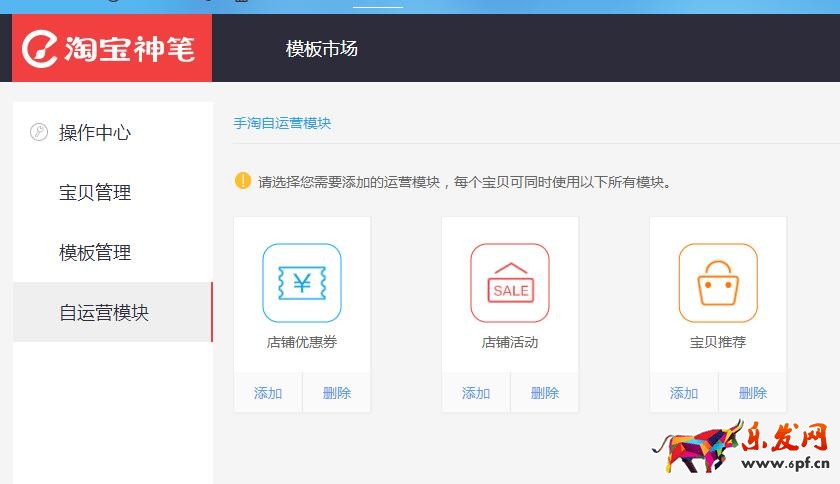 注意事項:批量添加寶貝推薦和優(yōu)惠券及店鋪活動:用自運營模塊,可以把店鋪優(yōu)惠券,店鋪活動,寶貝推薦同時批量插入所有寶貝中!
