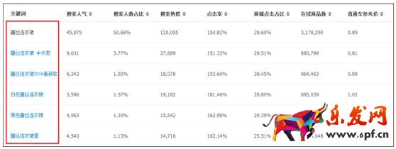 比如,你選中的是“蕾絲”,那么你就用“產(chǎn)品詞+修飾詞”的組合作為核心屬性點(diǎn),在這里就是“蕾絲連衣裙”、“連衣裙 蕾絲”等。