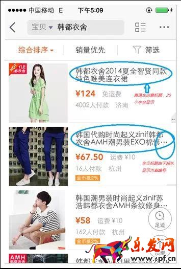 圖3:直通車顯示創(chuàng)意標題,自然搜索顯示省略后的標題