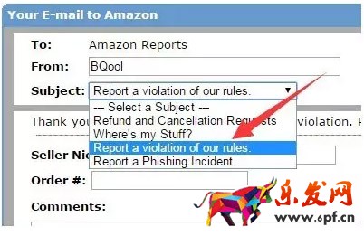 a、賣家要到http://www.amazon.com/gp/help/reports/contact-us來跟亞馬遜Seller Performance Team來聯(lián)系!確保你選擇"Report a violation of our rules”