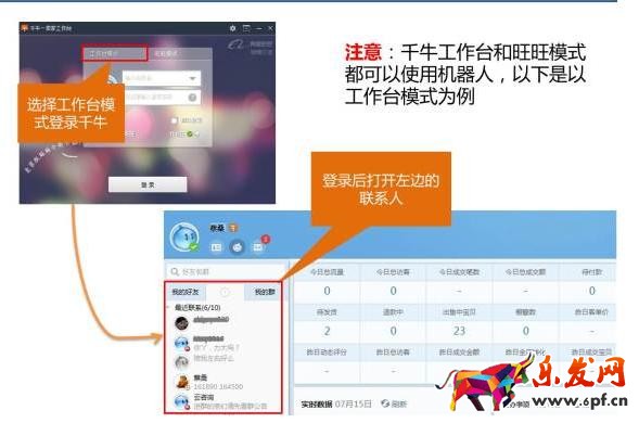 3.重啟千牛,啟動機器人后,對于機器人可以自動回復的問題,機器人完全實現自動回復,對于機器人不能自動回復的問題,聯系人處會閃亮,提示您需要負責本賬號的人工客服處理。