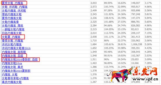 如果你是一個C店,你看紅框里面的這個詞:女鞋春季新款2016內增高,99.94%都被商城點走了,這個詞再好,也是不適合你的,0.06%得機會,哪有那么容易就是你的。