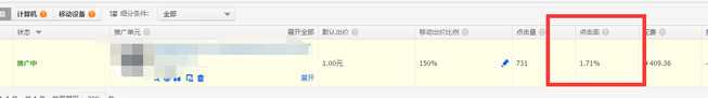 直通車測款測的是PC端,而非手機端,很多朋友都是兩個同時開,一看點擊率很高,就覺得是好款,殊不知手機端點擊率遠遠高于PC端,這樣會造成點擊率虛高的假象,手機端點擊率受位置影響非常嚴重,鑒于此:測款的時候務必關閉無線端推廣。