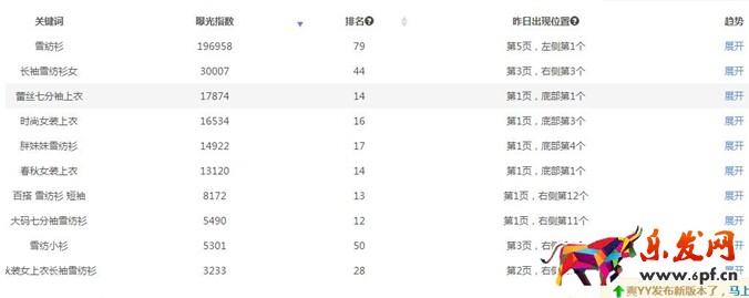 “雪紡小衫”這個詞就可以測試。看店寶軟件,或者店偵探,魔鏡。
