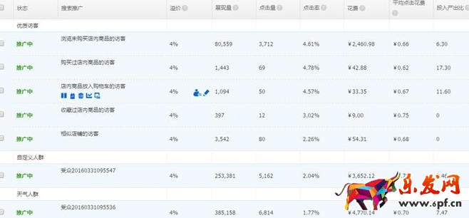 在開1-2周之后,你會發(fā)現(xiàn),這個人群的轉化很高。不過流量沒有那么大。那么下面就是調(diào)整流量。 提升流量;一般是提高溢價的折扣150-200%。這樣可以大量提高點擊量。同時,加關鍵詞。多加匹配詞,延伸詞,屬性相關的詞。這可以大幅提高點擊率和帶起關鍵詞的pc基礎分和無線的分數(shù)。