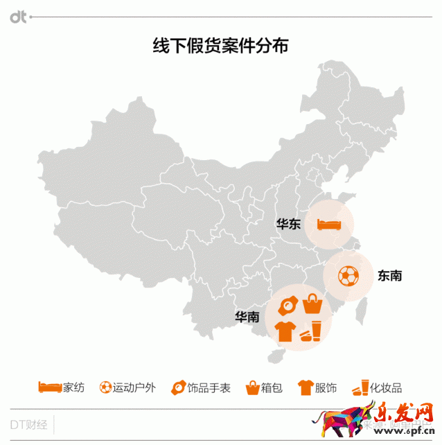 運動戶外則是另一個造假高度集中的行業(yè),超過6成的假冒案件來自東南地區(qū)。