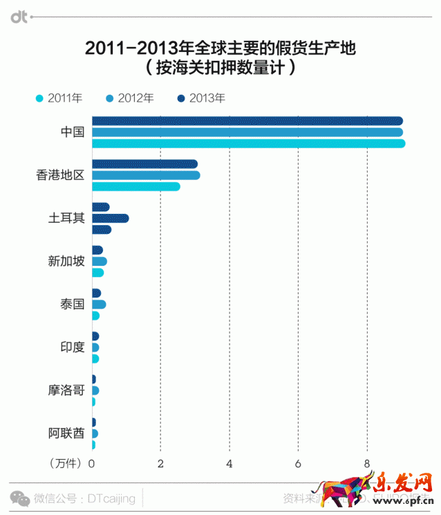 據(jù)經(jīng)濟合作與發(fā)展組織(OECD)與歐盟知識產(chǎn)權(quán)局(EUIPO)2016年4月發(fā)布的《假貨貿(mào)易影響全球經(jīng)濟》報告,2011-13年間,每年全球被扣押的假貨數(shù)量約14萬件。