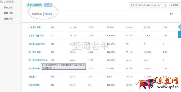 通過無線端屬性詞+名詞的方式,提高寶貝的個性化標簽,簡單的理解就是來100個流量60個都帶有這個屬性詞,寶貝的個性化標簽就形成了,如案例中的可坐可躺手推車,可坐可躺就是屬性詞,手推車就是名詞,前7天注意這些詞的流量和轉化。