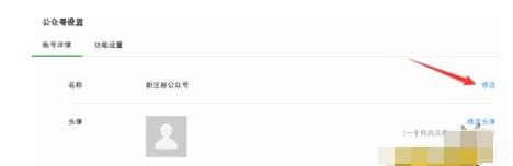 在公眾帳號(名稱)一欄顯示為(新注冊公眾號),且名稱后顯示有(修改入口)的情況下可修改。