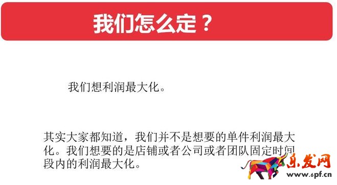 我們想要的是利潤(rùn)最大化,大家記住,不是毛利最大化,是全店一定時(shí)期內(nèi)能產(chǎn)生的絕對(duì)利潤(rùn)的最大化。