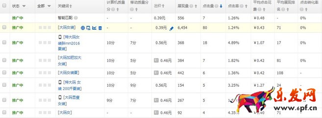 這樣子也不可以,大碼女裝的詞,一個(gè)詞的點(diǎn)擊量達(dá)到了其它所有詞的80%了,當(dāng)然不可能測(cè)試準(zhǔn)確了,馬上要停掉這個(gè)詞,并且還要記錄下來(lái),或者把它刪掉。最好的辦法是一直盯著,點(diǎn)到十個(gè)的時(shí)候,就應(yīng)該把它拉低,拉到很慢的點(diǎn)擊量才可以。