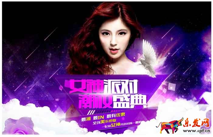 案例二,做的非常酷炫,各種背景、星光、漸變疊加。字體也以多花了功夫,還有一只鴿子飛呀飛過來。比案例一要多花時間,技巧也比較好,但是,當我拿掉文字后,你可以看出來是賣什么嗎?可以認為是賣化妝品,也可以是一張電影海報,或者節目海報,我是歌手海報都行。