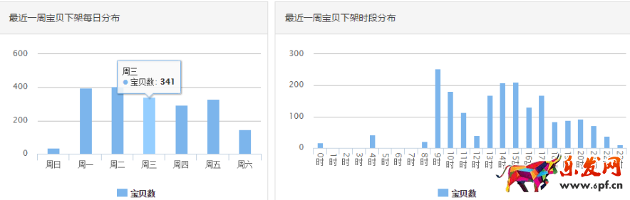 2、關注競爭對手的上下架時間。我們都知道,越靠近上下架時間,寶貝的自然搜索權(quán)重越高,排名越靠前。從下圖我們可以看出對手的上下架時間分布,我們可以研究對手為什么將上下架時間放在這段時間,是因為這段時間流量大還是因為這段時間競爭小。如果產(chǎn)品足夠競爭力,可以考慮同對手放在相似時間上下架,如果競爭力稍弱,最好錯開時間。另外多說一句:上下架最好不要把寶貝集中在一兩天或者一兩個時段,所謂雞蛋不要放在一個籃子里,每天都有一定量的寶貝上下架可以保證流量比較均勻。