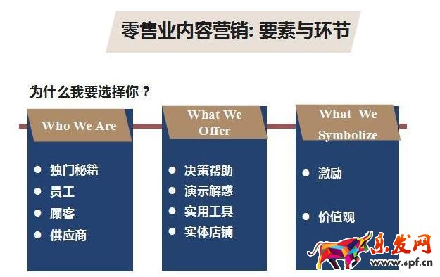 具體而言,為應對零售業的終極挑戰:Why Should I Buy From You(為什么我要選擇你)內容營銷可回答(演繹)以下三個相關問題: