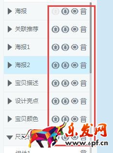 4、模塊操作區,從左往右分別是:上移、下移、隱藏、刪除。