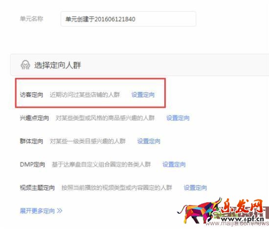 這上面是cpm付費(fèi)模式下的訪客定向,如果是cpc付費(fèi)模式,那么就只能使用系統(tǒng)智能推薦的人群了