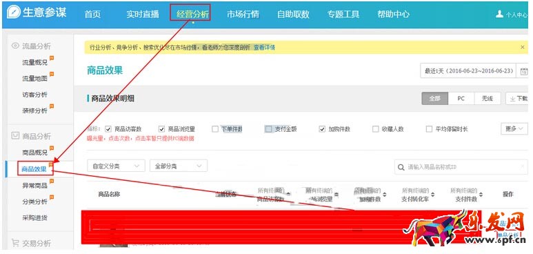 1)對于基礎流量較高的店鋪,直通車款式的篩選可以通過生意參謀-經營分析-商品效果-單品分析-銷售分析進行選款;