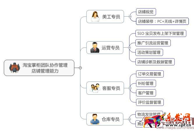 網店團隊配置架構中多數標配運營專員、美工專員、客服專員、倉庫專員,而很多掌柜覺得對員工的管理一直是個頭痛的問題。管理不是隨隨便便的敷衍了事,講究方式方法能事半功倍。
