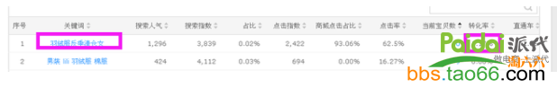 類目匹配問題,觀察選取的衍生詞之下,淘寶主推的是屬于哪個類目,是老年人羽絨服還是男士羽絨服,或者其他類目。
