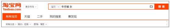 重要屬性是什么?搜索“牛仔褲 女”,在搜索結果首頁展示的屬性值就是重要屬性(不重要的,淘寶也不會展示出來)