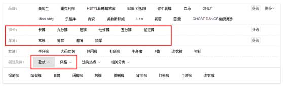 通過這里我們可以看到“褲長”、“厚薄”、款式、風格,這四個屬性很重要。