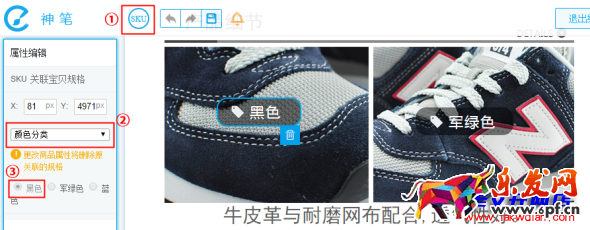 如下圖,選擇添加SKU,把標(biāo)簽放在相應(yīng)的圖片上,選擇具體的顏色或者尺碼等信息。