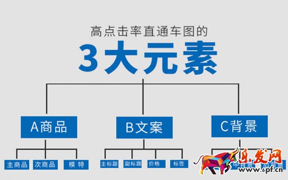 在設計一個直通車圖的時候,我們首先要分析它分別由什么元素構成的。