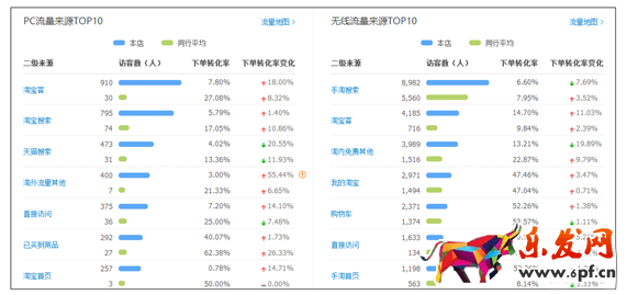 除了我們要關注前面的綜合支付轉化率外,我們還要看的一個數據就是各個主流渠道的下單轉化率。因為你的主要流量來源如果轉化率出問題了,那么這個渠道的流量很有可能也會收到影響,尤其是自然搜索流量和直通車流量。
