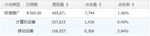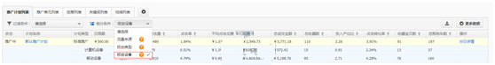 在流量維度上看,這個計劃的點擊率比較一般,那么解決措施是什么?大多數人都會說,換主圖,刪減低點擊的關鍵詞,調整關鍵詞排位。但是單從表面去分析調整就可以達到優化的效果嗎?請看下面計算機設備和無線端設備的數據。發現其實無線端設備的點擊率其實不差,主要是因為PC端的點擊率拉低了整個計劃的點擊率。那么首先要確認一點,是否無線端和PC端的創意是否相同。如果是不同的刪掉點擊率較差的創意,如果是相同的情況下,那么接下來我們分析推廣詞,首先無線端的推廣詞數據和PC端的推廣詞數據對比,將兩方面點擊率較差的詞進行刪減,然后看PC端點擊率較差的詞的排名情況,將排名較差的進行價格調整,一般除了豆腐塊,點擊率最高的是右側欄的2-4位。
