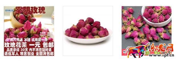 我直接拿一個(gè)例子來講,玫瑰花茶類目,單品消費(fèi)30-90元是行業(yè)主要消費(fèi)力,下面的三個(gè)主圖的標(biāo)價(jià)都是1元(普及一下:下述的標(biāo)價(jià)1元為1元/50g,買多少根據(jù)店面包郵條件和個(gè)人需求略有不同,由于茶葉包裝的特殊性,類目價(jià)格從幾元到幾百元價(jià)格不一,不做本題參考范疇),在你心目中哪個(gè)是“好“的主圖,哪個(gè)是”優(yōu)秀“的主圖。