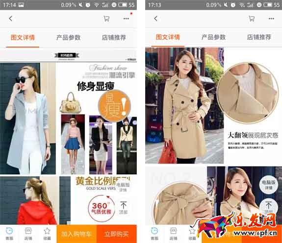 手機屏幕寬度是有限的,高度是比寬度長一點的,左中右的排版只能是讓圖片變小,看不到圖片的細節,這種排版方式是很難將細節傳達給買家的。