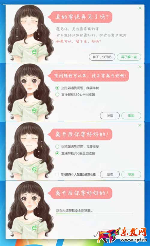 比如,卸載360的窗口,會(huì)向你強(qiáng)調(diào)卸載后的風(fēng)險(xiǎn)。