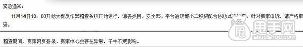 點評:看來是針對雙十一虛假交易的商家進行一次大規模的查處,感覺阿里有點“卸磨殺驢”的感覺,雙十一當天銷售額是上去了現在又來查處。