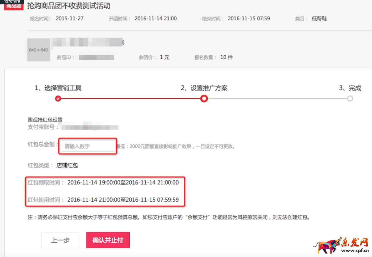 3)輸入紅包總金額。注意:每個商家設置的圍觀搶紅包總金額不低于2000元人民幣,且商品報名活動價超過2000元,設置紅包總金額不低于其商品報名活動價的2倍。
