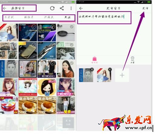 第三步 選好寶貝之后可以點擊發布 然后填入你分享的理由(內容主要以產品賣點為主也可以復制整個標題)如上圖右