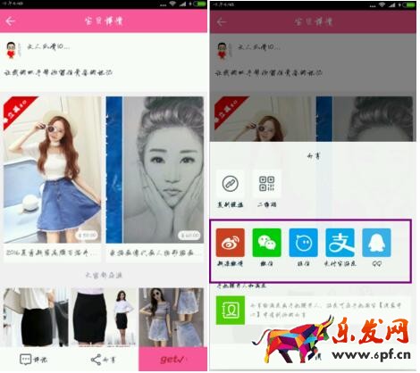 第五步 點擊發布成功之后會進入到寶貝詳情頁面(如下圖左),這個時候點擊最下方的菜單分享 我們可以選擇想要分享的渠道(如下圖右)