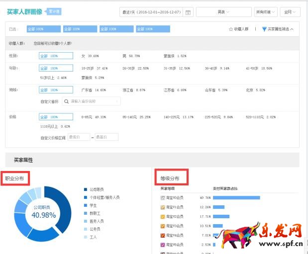 以下是專業版的生意參謀,既可以看當個關鍵詞的人群畫像,也可以可以看整個類目的人群畫像,這就是可以幫助你更細致的分析店鋪人群了。