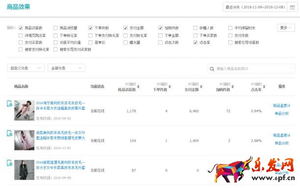 如:生意參謀---商品效果分析點擊率: