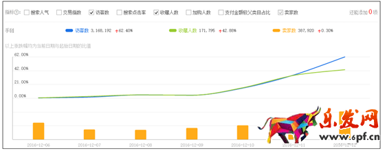 有沒有發現一丟丟的規律:他們三個的變化趨勢幾乎快要完全重合了,加購的增長趨勢稍稍明顯一些而已!這是大盤的數據,意味著什么?意味著一般情況下,實際上任何一個類目,在現在的購買行為下:訪客數、訂單數、收藏人數、加購人數,都應該是同步上漲的(對于一個爆款而言)。