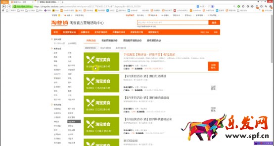 那我們以淘寶美食為例來(lái)看看,點(diǎn)進(jìn)去以后我們會(huì)發(fā)現(xiàn)很多淘寶美食的活動(dòng)是我們?cè)谄綍r(shí)旺旺上接受不到系統(tǒng)消息的。因?yàn)橥辖o我們彈出的消息很多都是反向招商的,當(dāng)我們的店鋪符合這個(gè)寶貝,然后系統(tǒng)會(huì)對(duì)我們進(jìn)行反向招商,那這樣是很局限的,有些活動(dòng)是不進(jìn)行反向招商的,需要我們自己來(lái)發(fā)掘。