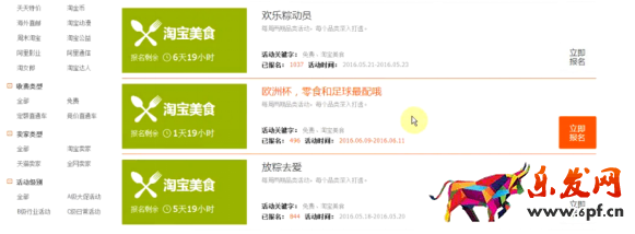 舉個(gè)例子,在六月份有個(gè)“歐洲杯、零食和足球最配哦”的活動(dòng),美食類(lèi)目下面有很多的賣(mài)家,但報(bào)名活動(dòng)的人卻不到500家,也就是說(shuō)這個(gè)活動(dòng)入口大部分的人是找不到的,需要到淘營(yíng)銷(xiāo)里來(lái)看有沒(méi)有符合類(lèi)目的活動(dòng)然后再進(jìn)行報(bào)名。那么當(dāng)活動(dòng)開(kāi)始的時(shí)候,我們就能獲得一些活動(dòng)資源的展現(xiàn)。