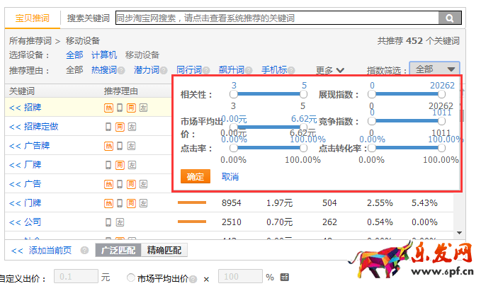 潛力詞:有一定展現量且市場平均出價或競爭指數較低的關鍵詞